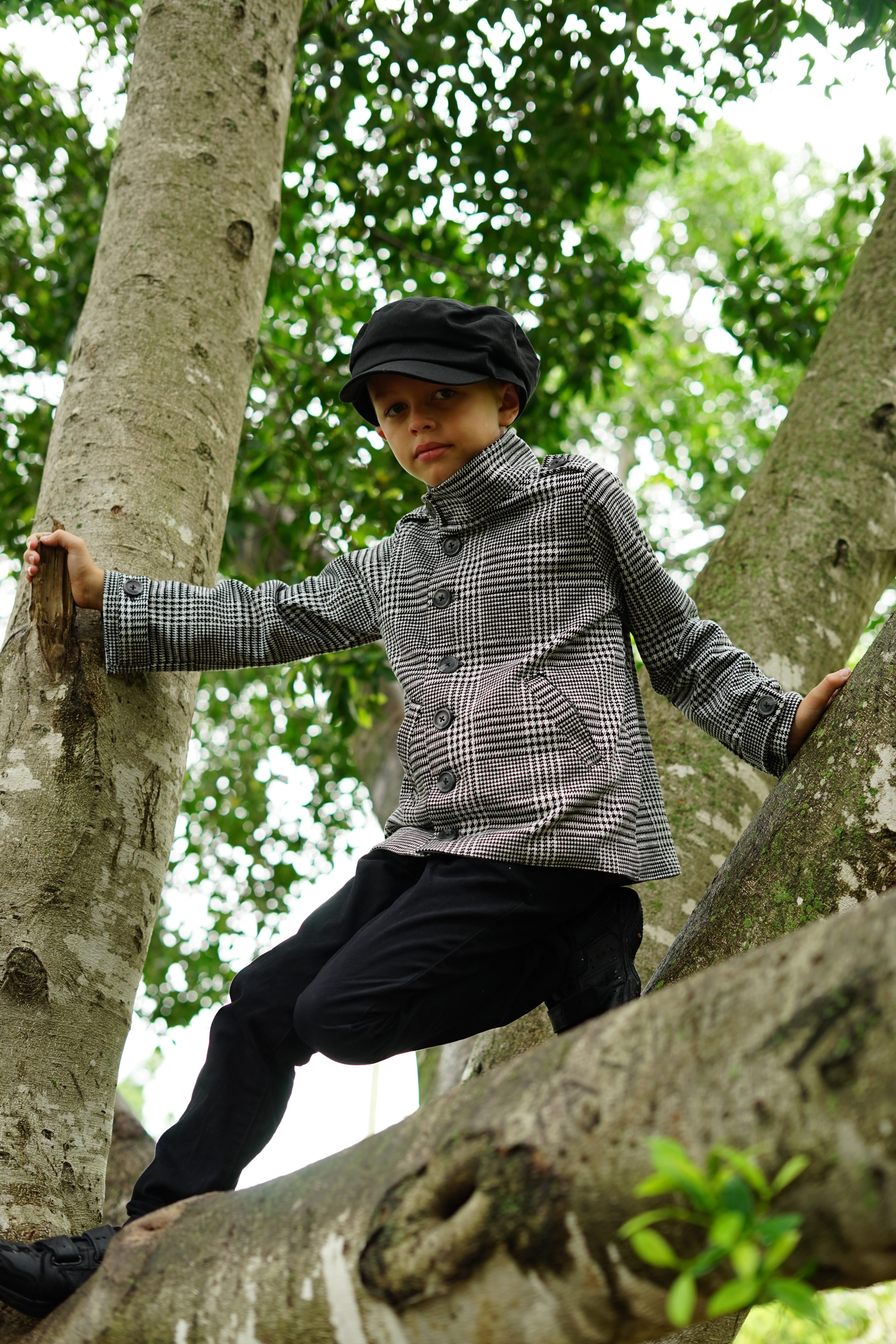 This jacket is fully lined, with optional but fun welt pockets and tabs. It comes in a range of kids sizes from 12-18 months to a size 14, and recommends the use of a medium to heavy weight woven fabric and a thinner fabric for the lining. For those in colder climates wanting to use thicker fabrics, the pattern recommends sizing up. My son was on the upper end of the sizing chart for a size 7 and the fit was just right.